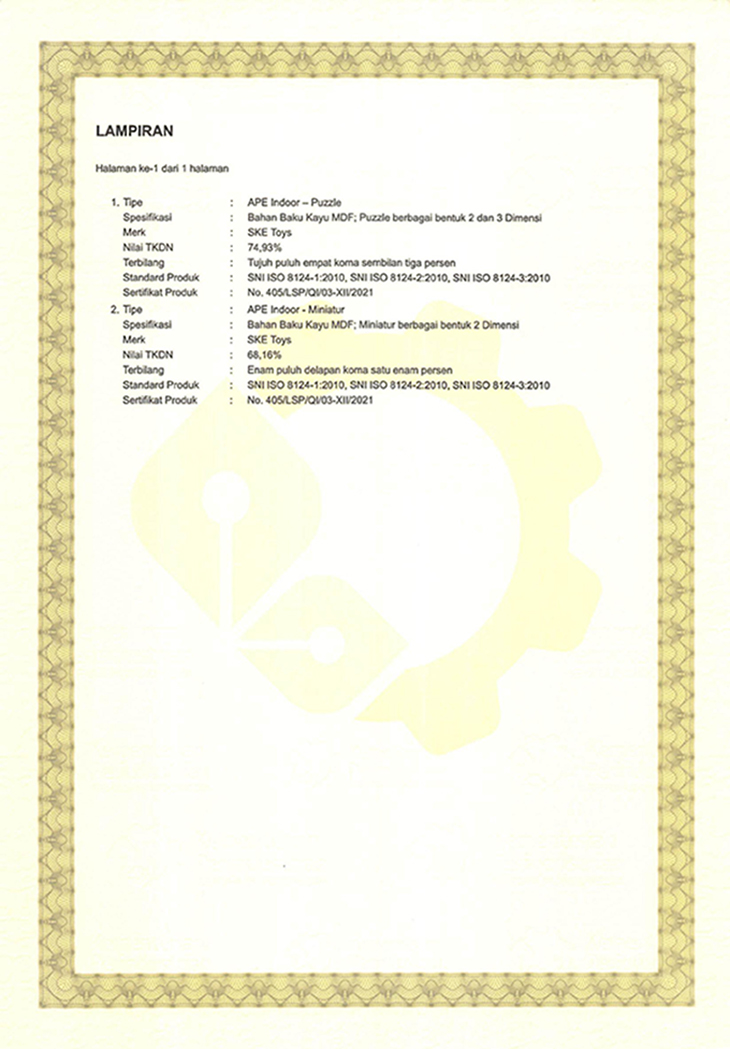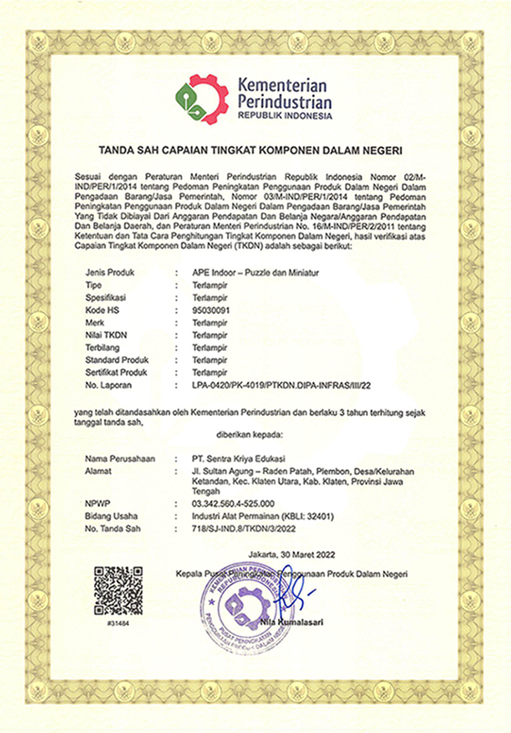 | Puzzle 30 huruf hujaiyah, 1 huruf tiap potongan puzzle. Ukuran termasuk frame : ± 30 x 21 x 0,8 cm Bahan : Kayu, MDF SNI ISO 8124.1:2010, SNI ISO 8124.2:2010, SNI ISO 8124.3:2010 *harga sudah termasuk pajak |