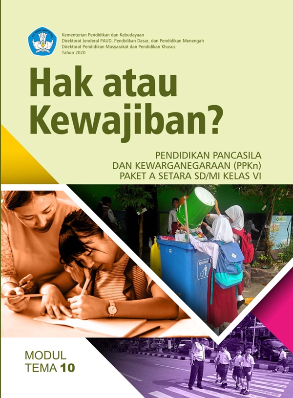 Modul Paket A Kelas 6, Tema 10: Hak atau Kewajiban?, merupakan terbitan kemdikbud dengan pengarang Riadi Syah Putra. Dicetak menggunakan kertas isi HVS 70 gr dengan kualitas cetak terbaik. Buku ini terdiri dari 44 halaman.