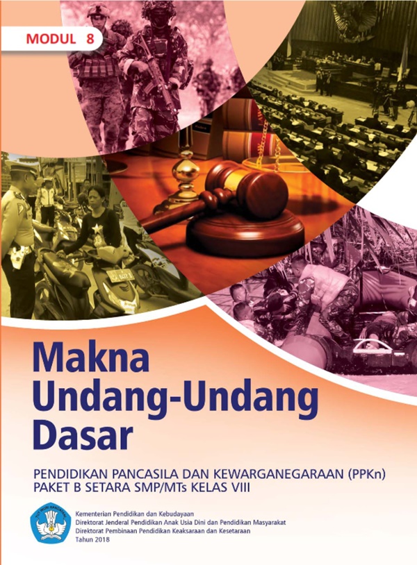 Modul Paket B Kelas 8, Tema 8: Makna Undang-Undang Dasar, merupakan terbitan kemdikbud dengan pengarang Nanik Pudjowati, M.Pd. Dicetak menggunakan kertas isi HVS 70 gr dengan kualitas cetak terbaik. Buku ini terdiri dari 40 halaman.