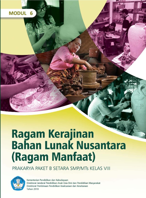 Modul Paket B Kelas 8, Tema 6: Ragam Kerajinan Bahan Lunak Nusantara, merupakan terbitan kemdikbud dengan pengarang Farhan Mutawakkil , Suci Paresti. Dicetak menggunakan kertas isi HVS 70 gr dengan kualitas cetak terbaik. Buku ini terdiri dari 48 halaman.