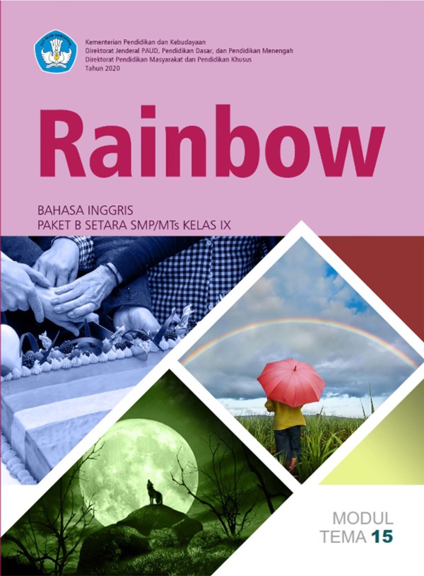 Modul Paket B Kelas 9, Tema 15: Rainbow, merupakan terbitan kemdikbud dengan pengarang Yuniarti, S.Pd, M.Hum. Dicetak menggunakan kertas isi HVS 70 gr dengan kualitas cetak terbaik. Buku ini terdiri dari 44 halaman.